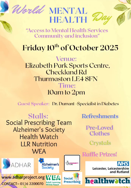 Come and meet our team at a special World Mental Health Day event organised by local mental health charity, Adhar Project.
