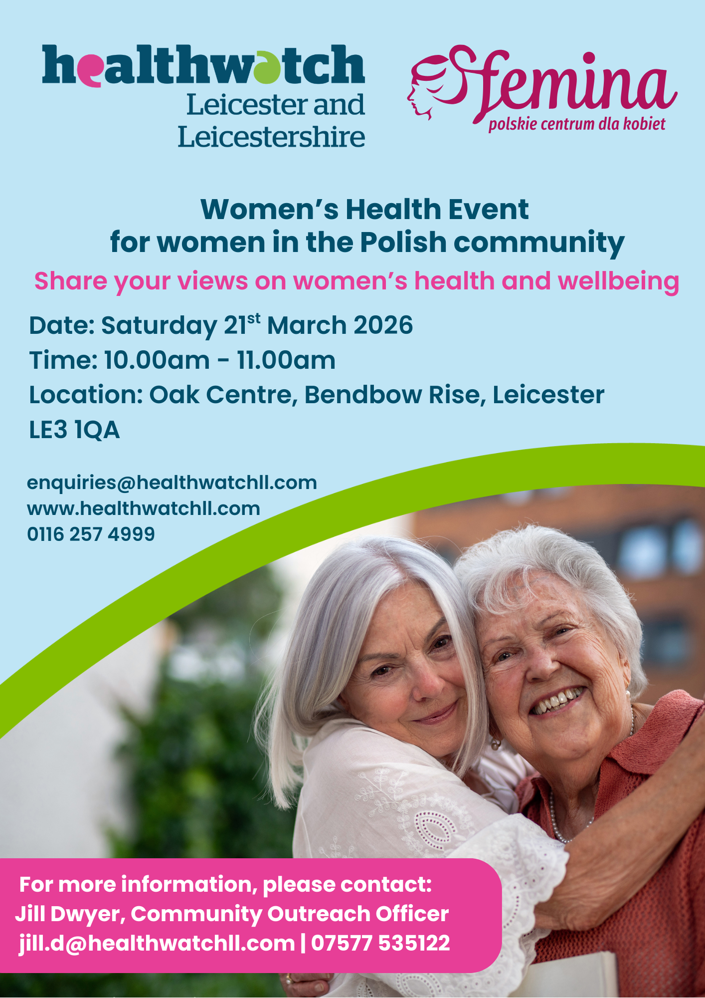 Jill, our outreach officer, will be at this event promoted by Femina to women in the Polish community. It is open to the public.