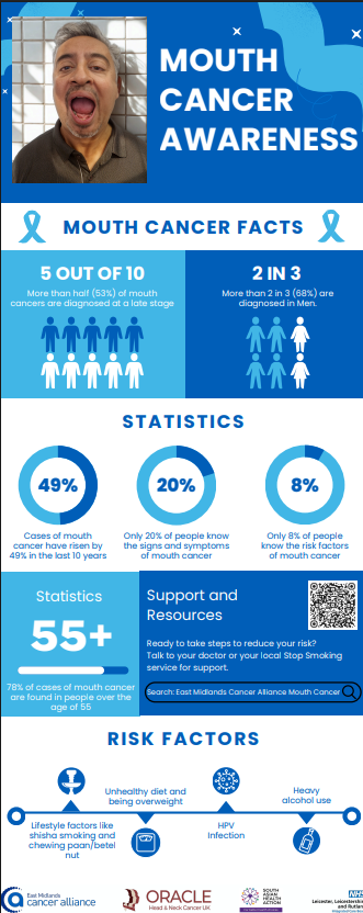 Our campaign aims to raise awareness of the symptoms and highlight the increased risks linked to shisha smoking and chewing paan/betel nut - especially within South Asian, Middle Eastern and Black communities where cases of Mouth Cancer are higher.