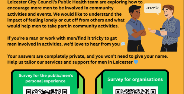 The public health team in Leicester is currently running two surveys to find out about the impact of social isolation and loneliness in men and want to hear from local organisations and individual men.
