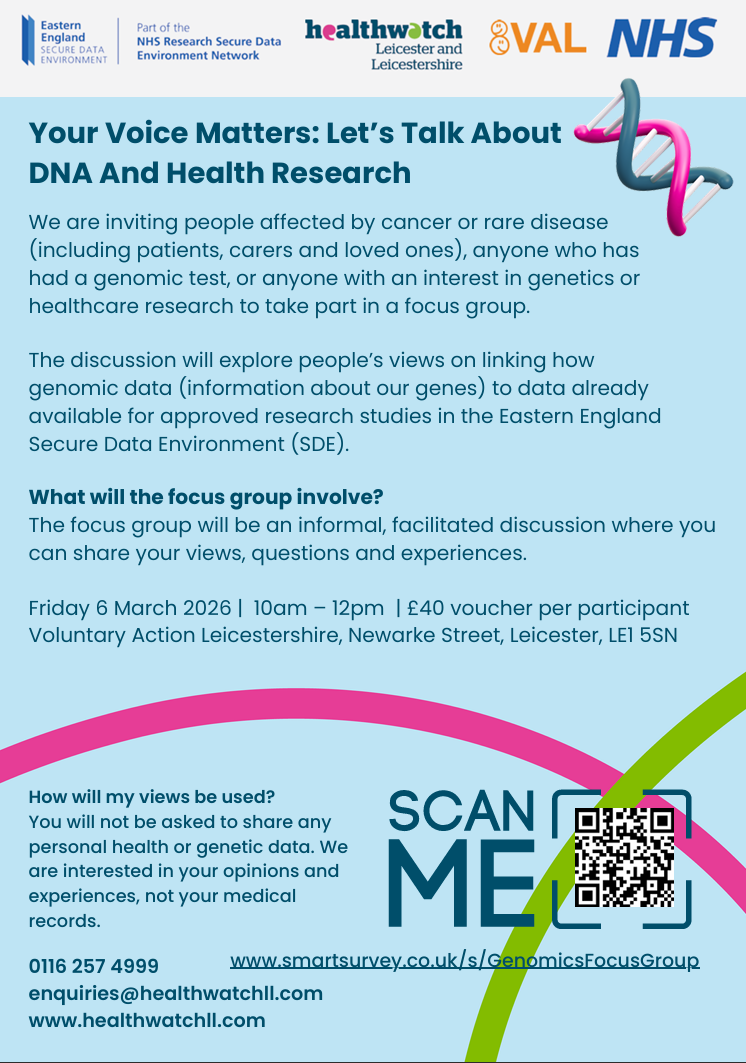 We are inviting people affected by cancer or rare disease (including patients, carers and loved ones), anyone who has had a genomic test, or anyone with an interest in genetics or healthcare research to take part in a focus group.