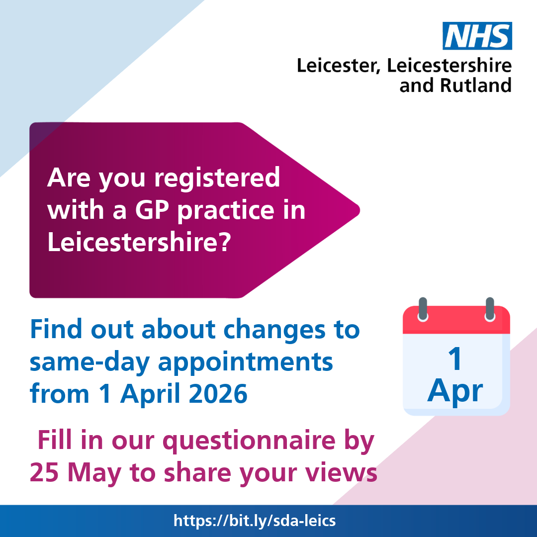 Find out more about the same-day appointment changes https://leicesterleicestershireandrutland.icb.nhs.uk/improved-evening-a…